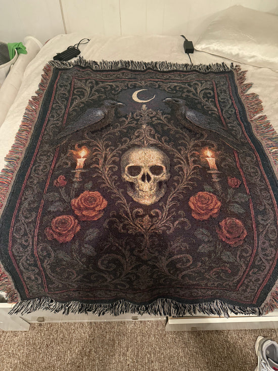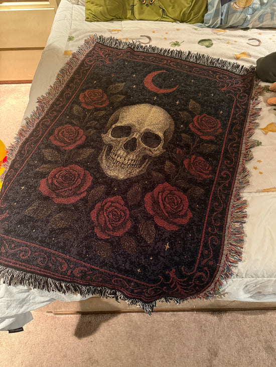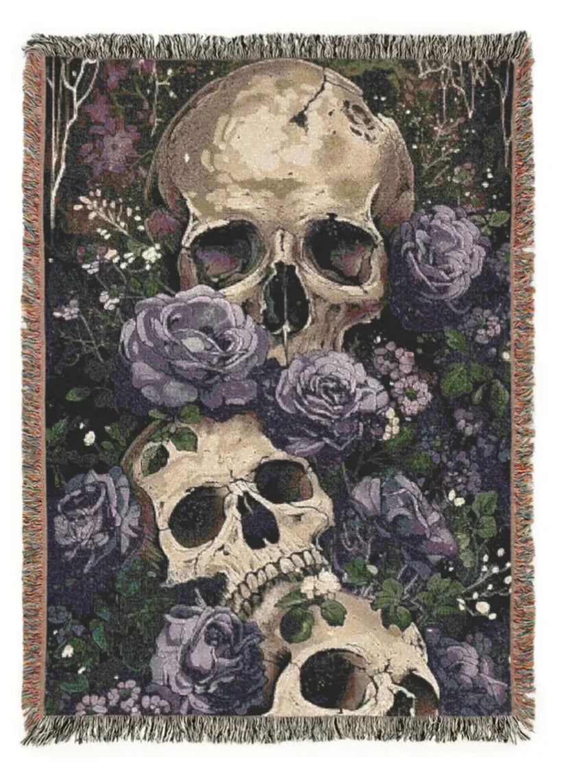 Wrap yourself in the elegance of darkness with blankets woven from skulls, roses, and moonlit shadows. Each piece is designed to bring mystery, comfort, and timeless gothic beauty to your space. 🌙